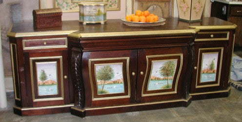 Buffet with hand painted scenery 102"W x 34 3/4"H x 29"D. Custom buffets available.
