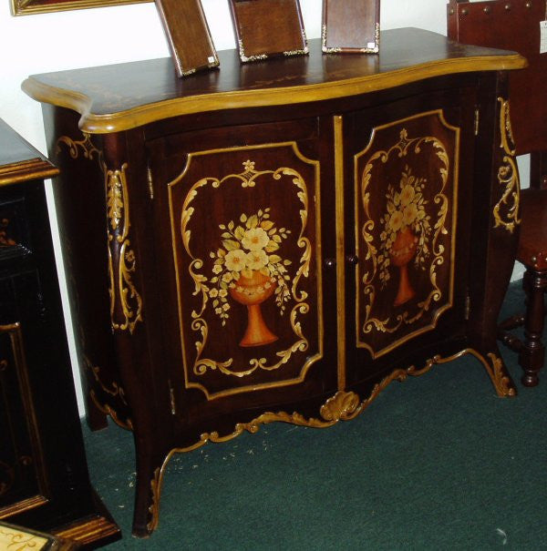 Hand Painted Floral Buffet with curved sides and front. 47"W x 21 1/2"D x 41 1/2"H